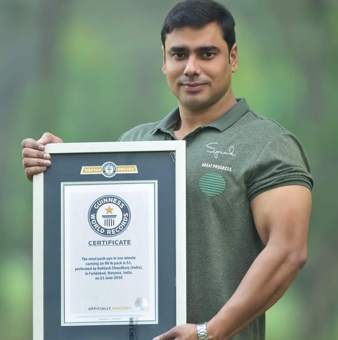 In 2016, Rohtash entered the Guinness World Records by completing 51 push-ups in one minute while carrying approximately 36 kg (80 lb) on his back—a record that surpassed the previous benchmark set in England.