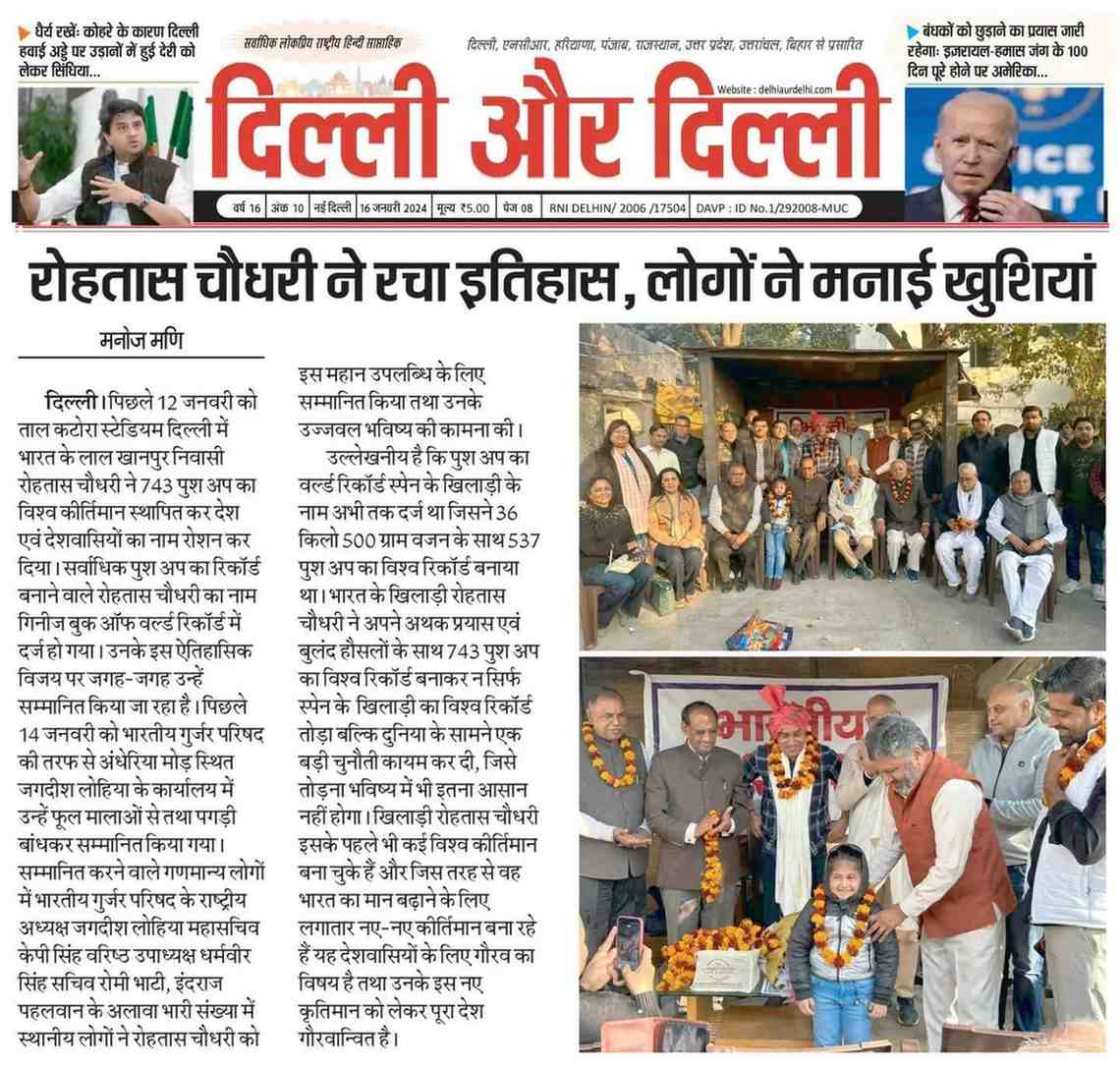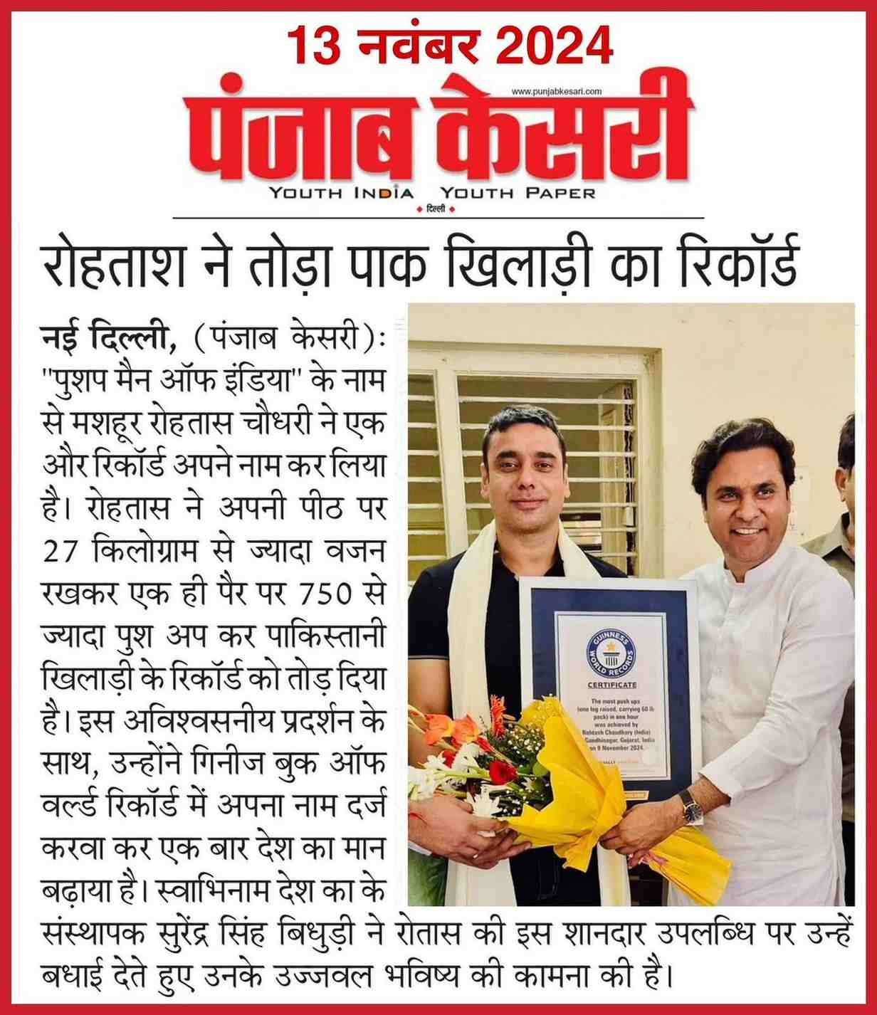 On one significant day, Rohtash made headlines by performing 704 one-legged push-ups in one hour, with a weight of 27.875 kg strapped to his back—raising the bar past the former record held by Pakistan. This feat was achieved in Gandhinagar, Gujarat.